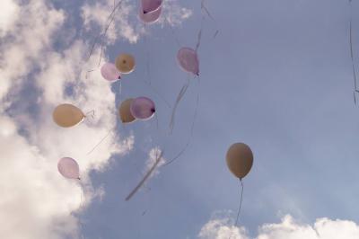 Das Brautpaar ging vor und brachte uns zu der großen Teressa, wo mit Sekt angestoßen wurde. Nachdem sich die Leute unterhielten und noch ein paar Fotos gemacht wurden, kam es zum Ballons steigen lassen, was auch ein schöner Moment war. Kurz danach kam mein persönliches Highlight: die Hochzeitstorte, yummi! :D